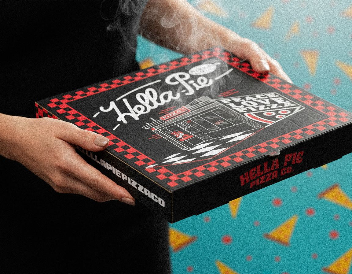 Much of the inspiration for Hella Pie Pizza Co. stems from the shared experiences of enjoying pizza with friends and family during the 80s and 90s. Both the owner, Marcus, and I drew from those memories of classic pizza spots that felt fun, familiar, and timeless. Marcus wanted the brand to capture that nostalgic warmth while adding a cultural flair that reflects the energy and style he grew up with. The result is a brand that’s vibrant, inviting, and deeply rooted in the joy of community and connection.