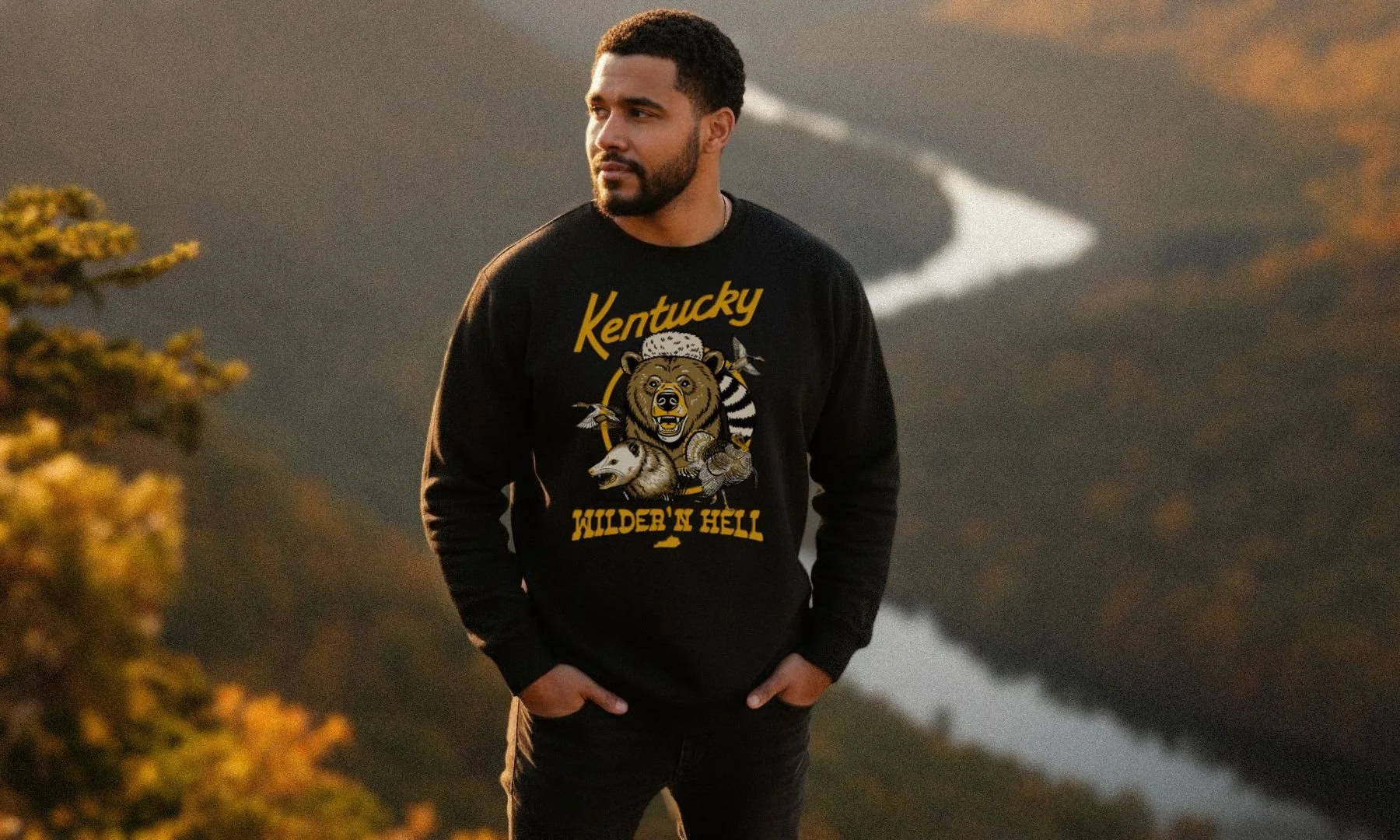 The work draws inspiration from Kentucky’s deep-rooted culture and unapologetic pride—its sports traditions, local folklore, native wildlife, and the everyday character of the people who call it home. Each design pulls from the visual language of regional iconography and blends it with bold, expressive illustration to create apparel that feels authentic, irreverent, and proudly Kentucky. The goal is to celebrate the spirit of the state and capture what it truly means to be a kick-ass Kentuckian.